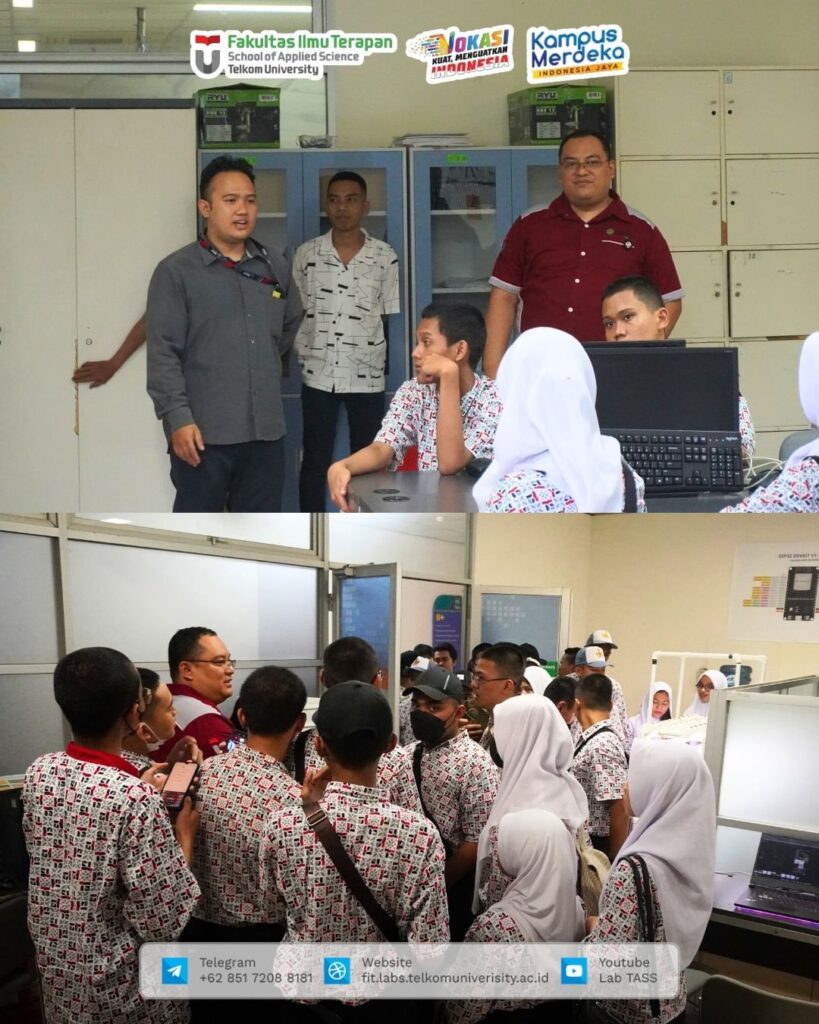 Unit Laboratorium Fakultas Ilmu Terapan menerima kunjungan dari siswa-siswi SMK Telkom Jakarta pada hari Senin, 6 November 2023. Pada kunjungan ini para siswa mengunjungi beberapa laboratorium yang berada di Fakultas Ilmu Terapan. Antusiasme siswa-siswi SMK Telkom Jakarta sangat tinggi, hal ini dapat dilihat dari banyaknya siswa yang aktif bertanya kepada para Dosen, Laboran, atau Asisten Laboratorium yang mendampingi pada kunjungan ini. Dengan adanya kunjungan ini, harapannya dapat membuka wawasan siswa-siswi SMK Telkom Jakarta tentang laboratorium yang ada di Fakultas Ilmu Terapan Telkom University.
